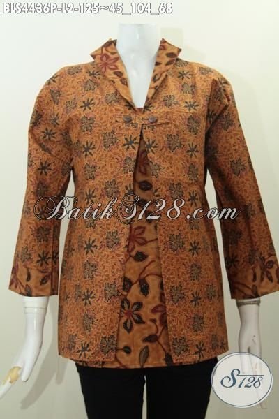 Baju Blus Batik Solo Dua Warna Dengan Motif Mewah Klasik Printing Berpadu Desain Jas Berkelas Yang Membuat Cewek Lebih Anggun [BLS4436P-L]