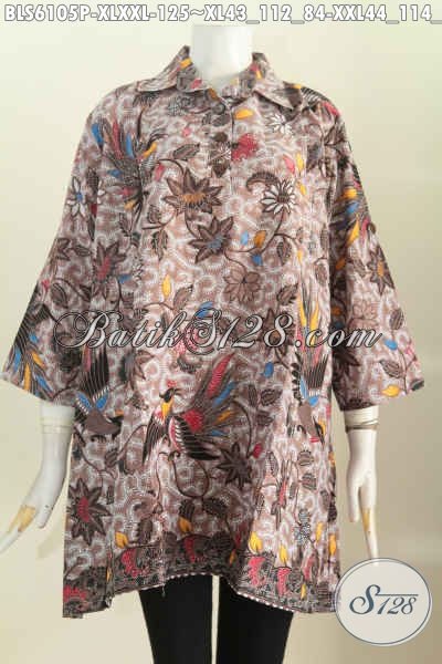 Baju Blus Batik Solo Model A Kerah Kemeja, Pakaian Batik Trendy Bahan Adem Proses Printing Motif Bagus Hanya 125K [BLS6105P-XL , XXL]