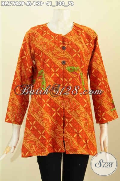 Baju Blus Batik Solo, Pakaian Batik Trendy Motif Elegan Proses Printing Desain Tanpa Krah, Cocok Untuk Seragam Kerja [BLS7582P-M]
