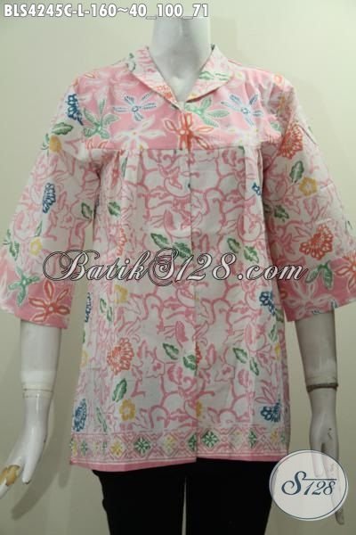 Baju Blus Batik Ukuran L Dengan Warna Pastel Model Kerah Langsung, Busana Modis Dan Berkelas Bahan Adem Proses Cap Hanya 100 Ribuan [BLS4245C-L]