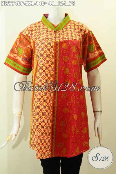 Baju Blus Batik Wanita Gemuk Model Terkini, Baju Batik Elegan Motif Klasik Desain Berkelas, Tampil Anggun Dan Elegan Hanya Dengan 100 Ribuan [BLS7740P-XXL]
