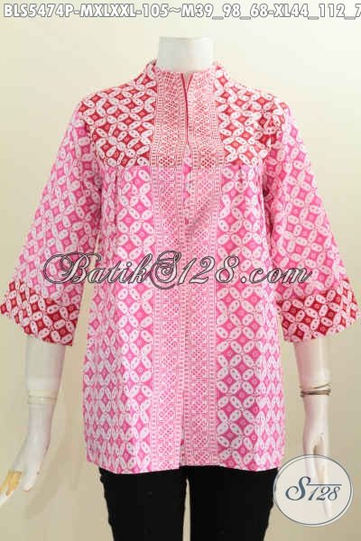 Baju Blus Batik Warna Pink, Busana Atasan Wanita Motif Kawung Proses Printing Harga 105K Modis Buat Pesta Dan Kerja Tampil Terlihat Beda [BLS5474P-XL]