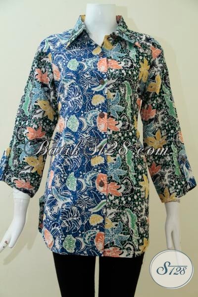 Baju Blus Dengan Motif Batik Keren Dan Modern, Pakaian Batik Tiga Perempat Desain Formal Cocok Untuk Kerja Kantoran [BLS1920CT-XL]
