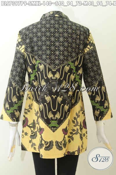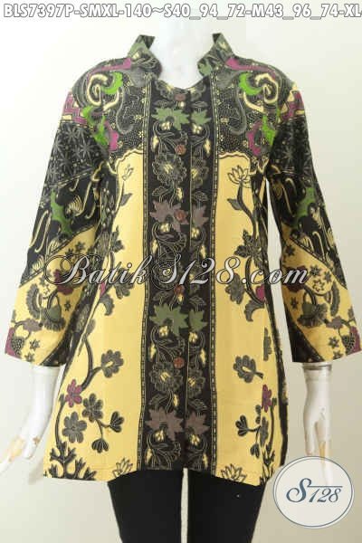 Baju Blus Elegan Bahan Batik Printing, Pakaian Batik Kerah Shanghai Untuk Kerja Kantoran Motif Klasik Harga 140K [BLS7397P-S]