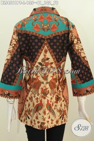 Baju Blus Elegan Berkelas, Produk Baju Seragam Kerja Untuk Wanita Karir Model Kerah Kotak Motif Sinaran Proses Print Ukuran L [BLS4561P-L]