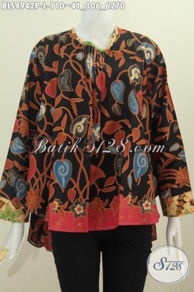 Baju Blus Elegan Model Lengan Panjang, Pakaian Batik Printing Seragam Kerja Kwalitas Bagus Motif Mewah Buatan Solo Asli Ukuran L [BLS4942P-L]