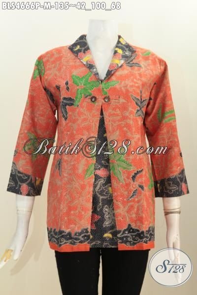 Baju Blus Formal Desain Kombinasi Blazer Lebih Rapi Dan Mewah, Pakaian Batik Wanita Warna Orange Motif Bunga Proses Printing Harga 135K [BLS4666P-M]