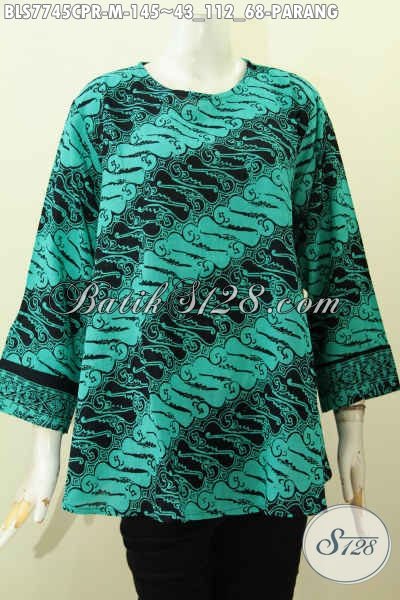 Baju Blus Hijau Motif Parang, Pakaian Batik Jawa Etnik Bahan Jatuh Paris, Produk Busana Batik Perempuan Masa Kini Untuk Tampil Beda [BLS7745CPR-M]