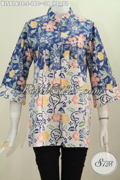 Baju Blus Istimewa Bahan Halus Desain Kerah Shanghai Tanpa Kancing, Busana Batik Dua Warna Motif Keren Proses Cap Bahan Adem [BLS4163C-S]