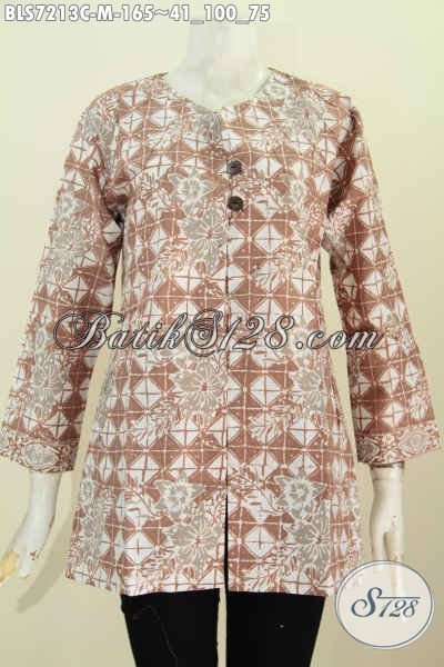 Baju Blus Istimewa Buatan Solo Spesial Untuk Wanita Karir, Pakaian Batik Tanpa Krah Proses Cap Motif Bagus Harga 165K [BLS7213C-M]