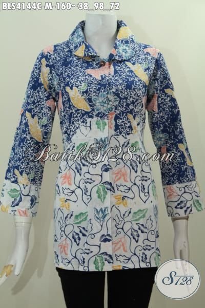 Baju Blus Istimewa Kombinasi Warna Biru Dan Putih, Busana Batik Trendy Dua Motif Kwalitas Bagus Proses Cap Tampil Lebih Gaya Dan Mempesona [BLS4144C-M]