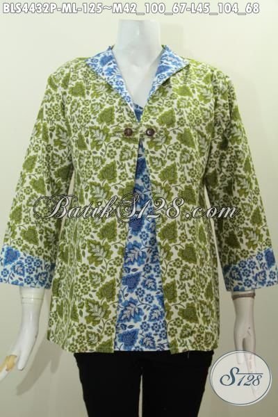 Baju Blus Istimewa Kombinasi Warna Hijau Dan Biru, Produk Busana Batik Cewek Terkini Model Jas Berbahan Halus Batik Print Asli Solo [BLS4432P-M]