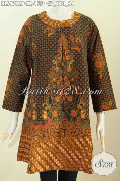Baju Blus Istimewa Motif Klasik Desain Lengan Pakai Pita Keren Dan Elegan, Baju Batik Kerja Wanita Trendy Proses Printing Harga 155K [BLS6782P-XL]
