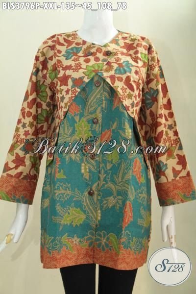 Baju Blus Jumbo Model Terbaru, Pakaian Batik Kombinasi Desain Balero Trend Fashion Wanita Masa Kini Yang Bikin Wanita Gemuk Tampil Cetar Membahana [BLS3796P-XXL]
