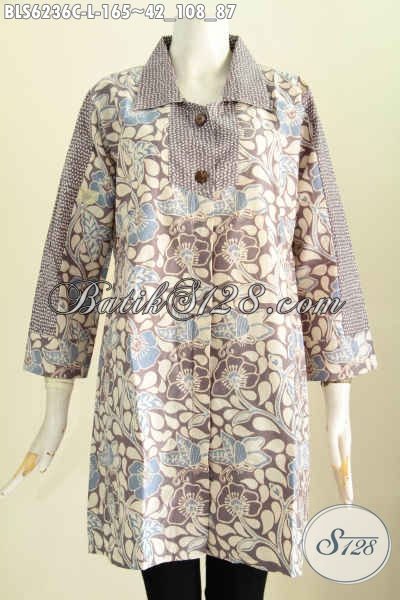 Baju Blus Kerah Kotak Proses Cap, Pakaian Batik Istimewa Bahan Adem Motif Unik Cocok Buat Gaul [BLS6236C-L]