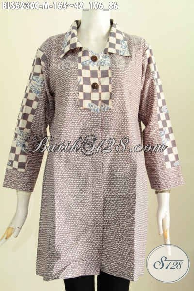 Baju Blus Kerah Kotak Trend Mode Terkini, Baju Batik Halus Proses Cap Bahan Adem Yang Nyaman Di Pakai [BLS6230C-M]