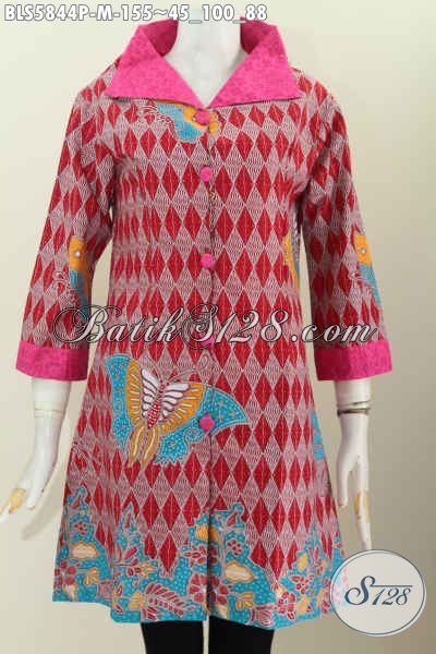 Baju Blus Kerah Lebaran Merah Motif Kupu, Produk Batik Modern Halus Kwalitas Istimewa Bikin Penampilan Lebih Mempesona [BLS5844P-M]