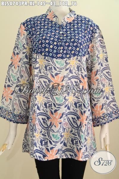 Baju Blus Keren Kombinasi Dua Motif, Produk Busana Batik Bahan Paris Dua Warna Daleman Tanpa Furing, Modis Untuk Santai [BLS4743PR-XL]