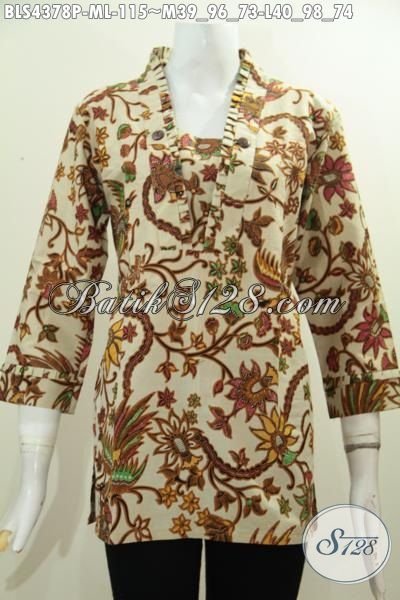 Baju Blus Keren Model Terkini Dengan Resleting Belakang, Baju Batik Kerja Elegan Bahan Adem Motif Trendy Proses Printing Harga Terjangkau [BLS4378P-M , L]