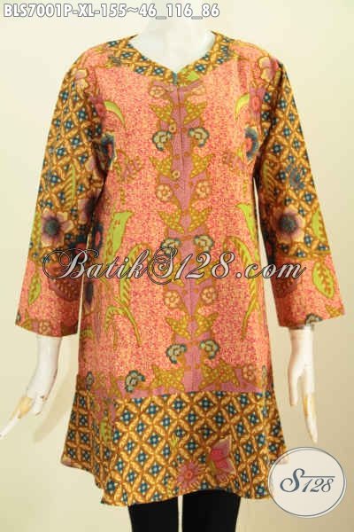 Baju Blus Kerja Wanita Dewasa Model Kerah Paspol Bahan Halus Motif Terkini Untuk Penampilan Makin Lengan Dan Gaya [BLS7001P-XL]