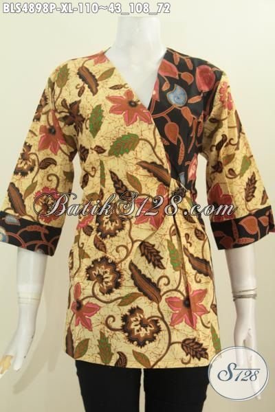 Baju Blus Kimono Bahan Batik Printing Warna Klasik Nan Elegan, Baju Batik Kerja Wanita Karir Kantoran Size XL [BLS4898P-XL]