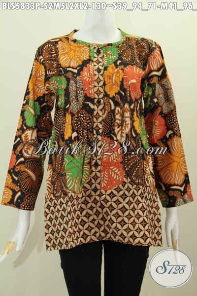 Baju Blus Lengan Panjang Pake Kancing Depan, Busana Kerja Wanita Karir Masa Kini Berbahan Halus Motif Trendy Proses Printing Harga Murmer [BLS5833P-S , M , L , XL]