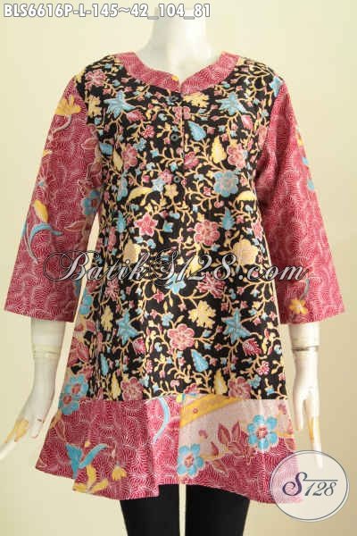 Baju Blus Masa Kini Untuk Tampil Beda, Hadir Dengan Kerah Paspol Berpadu Motif Kombinasi Yang Bikin Kekinian [BLS6616P-L]