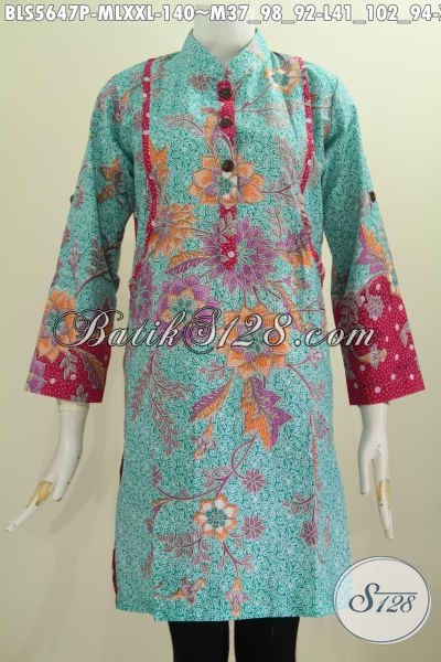 Baju Blus Mewah Harga Murah, Busana Muslim Batik Kerah Shanghai Lengan Panjang Motif Terkini Proses Print Tampil Lebih Cantik [BLS5647P-M]