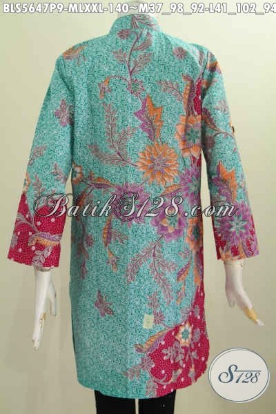 Baju Blus Mewah Harga Murah, Busana Muslim Batik Kerah Shanghai Lengan Panjang Motif Terkini Proses Print Tampil Lebih Cantik [BLS5647P-M , L , XXL]