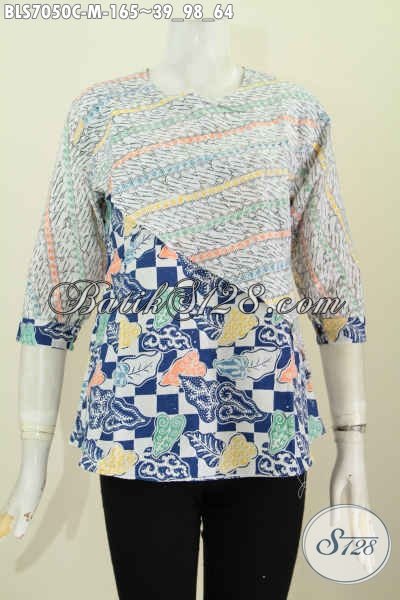 Baju Blus Modern Bahan Batik 2 Warna Dan Motif, Pakaian Batik Model Silang Buatan Solo Asli Proses Cap Harga 165K, Pas Buat Ke Kantor [BLS7050C-M]