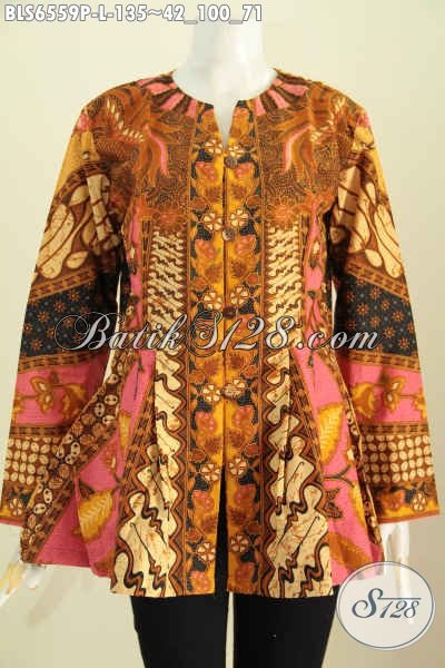 Baju Blus Modern Lengan Panjang Motif Klasik, Produk Pakaian Batik Masa Kini Kwalitas Istimewa Proses Printing Buatan Solo Asli Hanya 135 Ribu [BLS6559P-L]