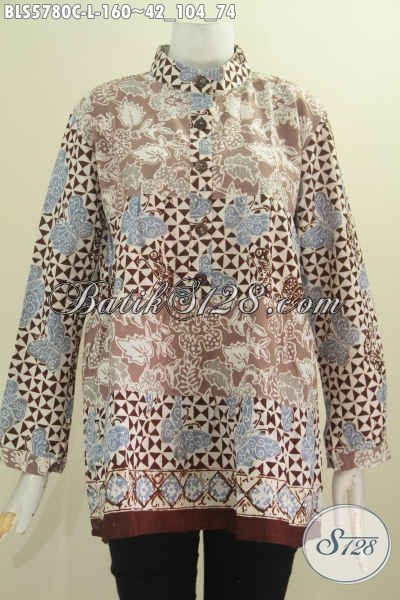 Baju Blus Modern Nan Modis, Pakaian Batik Solo Lengan Panjang Dua Warna Proses Cap Model Kerah Shanghai Tampil Lebih Istimewa [BLS5780C-L]