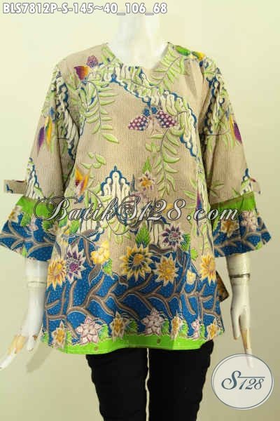 Baju Blus Modern Tanpa Krah, Busana Batik Trendy Dengan Lengan Berpita, Tampil Modis Dan Imut [BLS7812P-S]