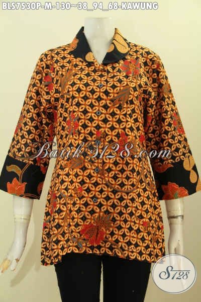 Baju Blus Motif Kawung, Blus Bulan Buatan Solo Dengan Kombinasi 2 Warna Dan Motif Proses Printing, Penampilan Lebih Modis Dan Elegan [BLS7530P-M]