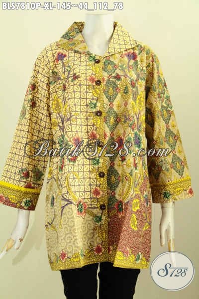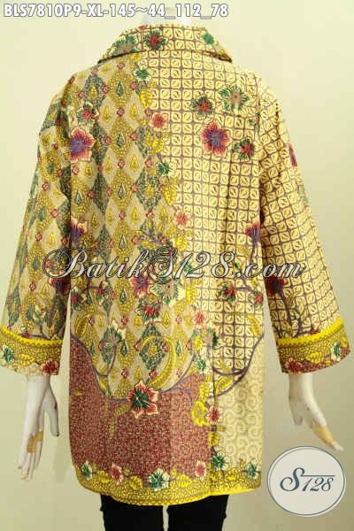 Baju Blus Murmer Bahan Batik Solo Asli, Pakaian Kerja Nan Elegan Model Krah Kwalitas Istimewa Proses Printing 100 Ribuan Saja, Tampil Mempesona [BLS7810P-XL]