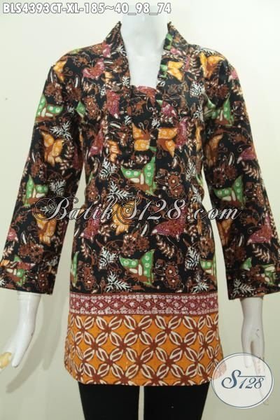 Baju Blus Trendy Motif Kupu, Produk Pakaian Batik Untuk Wanita Karir Model Resleting Belakang Proses Cap Tulis Size Extra Large [BLS4393CT-XL]