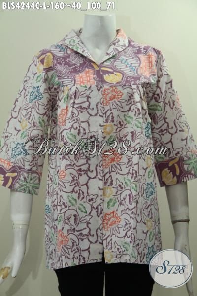 Baju Blus Trendy Produk Terbaru Dari Solo, Pakaian Batik Keren Model Kerah Langsung Motif Terkini Proses Cap, Bisa Untuk Formal Dan Santai [BLS4244C-L]