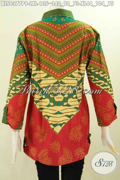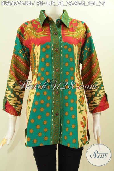 Baju Blus Wanita Dewasa, Baju Batik Kerah Kemeja Pria Bahan Adem Proses Printing Kwalitas Istimewa Cocok Buat Ke Kantor [BLS6377P-L , XL]