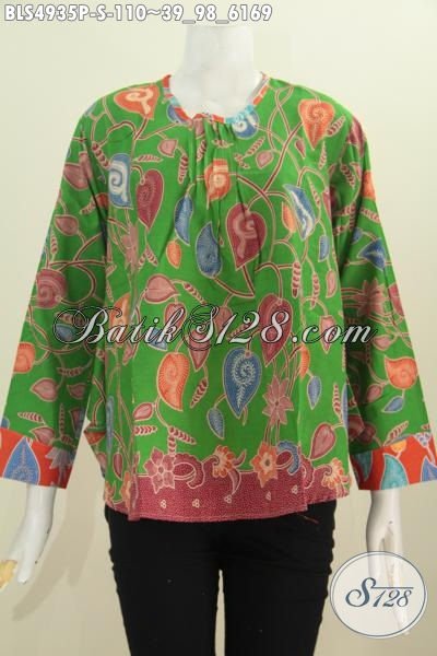 Baju Blus Warna Hijau Lengan Panjang, Produk Pakaian Batik Modern Nan Istimewa Dengan Bagian Belakang Lebih Panjang Motif Mewah Proses Printing Harga 100 Ribuan [BLS4935P-S]