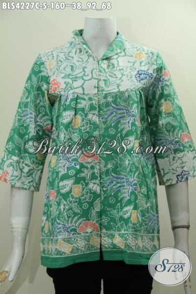 Baju Blus Warna Hijau Motif Trendy Model Kerah Langsung, Pakaian Batik Berkelas Cocok Buat Kerja Dan Acara Santai Proses Cap Harga Terjangkau [BLS4227C-S]