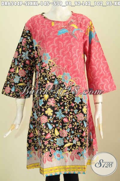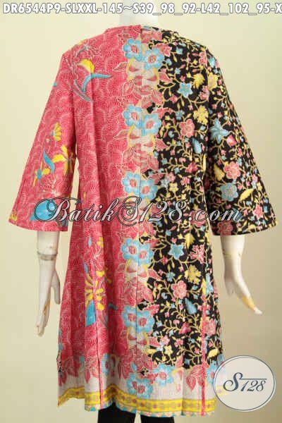 Baju Dress Bahan Batik Solo Proses Printing, Busana Batik Halus Desain Trendy Cocok Untuk Jalan-Jalan Dan Seragam Kerja [DR6544P-S , L , XXL]
