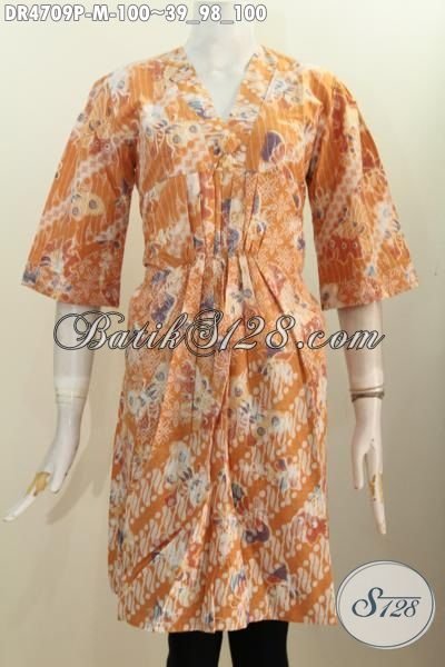 Baju Dress Batik Dua Motif Warna Kuning, Pakaian Batik Wanita Muda Berbahan Halus Proses Printing Cocok Banget Untuk Hangout Dan Busana Kerja Kantoran [DR4709P-M]