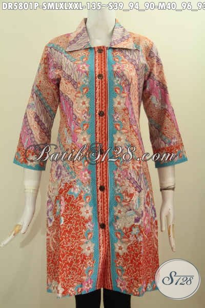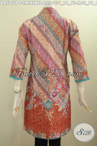 Baju Dress Batik Elegan Nan Mewah Motif Pagi Sore, Busana Batik Buat Wanita Karir Tampil Elegan Dan Mewah Dengan Harga Murah [DR5801P-M , XL , XXL]