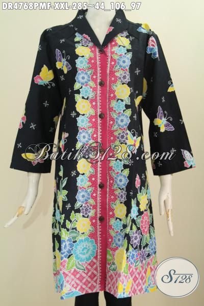 Baju Dress Batik Jumbo Spesial Untuk Wanita Gemuk, Produk Pakaian Batik Istimewa Berbahan Adem Full Furing Motif Bagus Proses Kombinasi Tulis Harga 200 Ribuan [DR4768PMF-XXL]