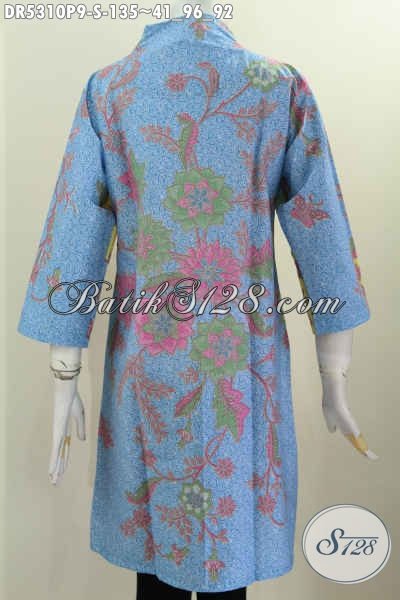 Baju Dress Batik Kerah Langsung Warna Cerah Motif Trendy Proses Printing, Modis Buat Wanita Muda Yang Ingin Tampil Gaya [DR5310P-S]