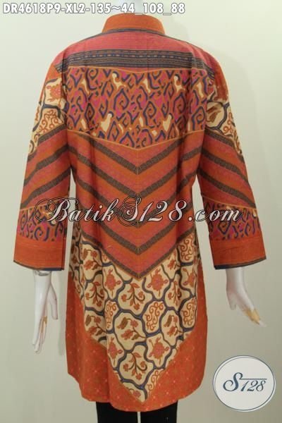 Baju Dress Batik Klasik Istimewa Motif Sinaran Proses Printingm, Busana Batik Elegan Size XL Untuk Perempuan Dewasa Terlihat Rapi Dan Modis, Bahn Bagus Nyaman Di Pakai [DR4618P-XL]