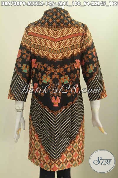 Baju Dress Batik Klasik Motif Sinaran Kerah Langsung Proses Printing Bahan Adem Kwalitas Bagus Harga Terjangkau [DR5708P-M , XXL]