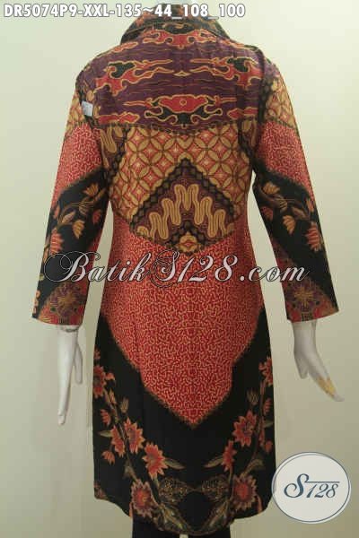Baju Dress Batik Klasik Nan Mewah, Sedia Busana Batik Elegan Halus Model Kerah Kotak Untuk Wanita Gemuk Ukuran Jumbo Bahan Adem Proses Printing Harga 130 Ribuan [DR5074P-XXL]