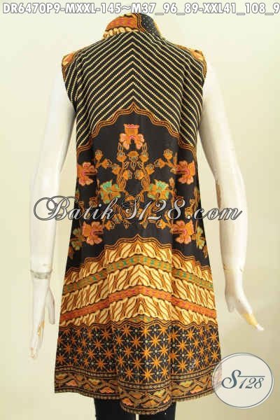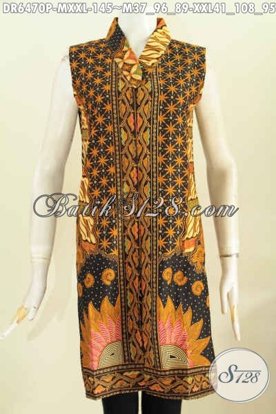 Baju Dress Batik Klasik Proses Printing, Busana Batik Keren ELegan Tanpa Lengan Bahan Adem Nyaman Di Pakai [DR6470P-M , XXL]
