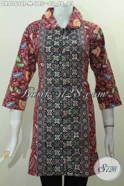 Baju Dress Batik Masa Kini Kombinasi Tiga Motif Trendy Proses Cap Tulis, Produk Baju Batik Terbaru Khas Solo Tampil Lebih Stylish [DR4069CT-M]